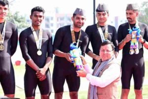 पौड़ी 38वें राष्ट्रीय खेल के अंतर्गत पौड़ी जिले के फूलचट्टी में गंगा नदी में आयोजित कैनो एक्सट्रीम स्लैलम प्रतियोगिता में...