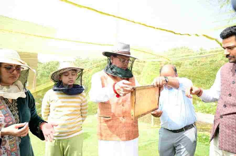 मुख्यमंत्री आवास परिसर में मंगलवार को शहद निष्कासन कार्य किया गया। पहले चरण में 60 किलोग्राम शहद निकाला किया गया। मुख्यमंत्री पुष्कर सिंह धामी ने उद्यान विभाग के अधिकारियों को निर्देश दिये कि मुख्यमंत्री आवास परिसर एवं आस-पास के क्षेत्र में 3-बी गार्डन (बी-फ्रेंडली गार्डन, बटर-फ्लाई फ्रेंडली गार्डन एवं बर्ड फ्रेंडली गार्डन) विकसित करने की दिशा में कार्य किये जाएं।