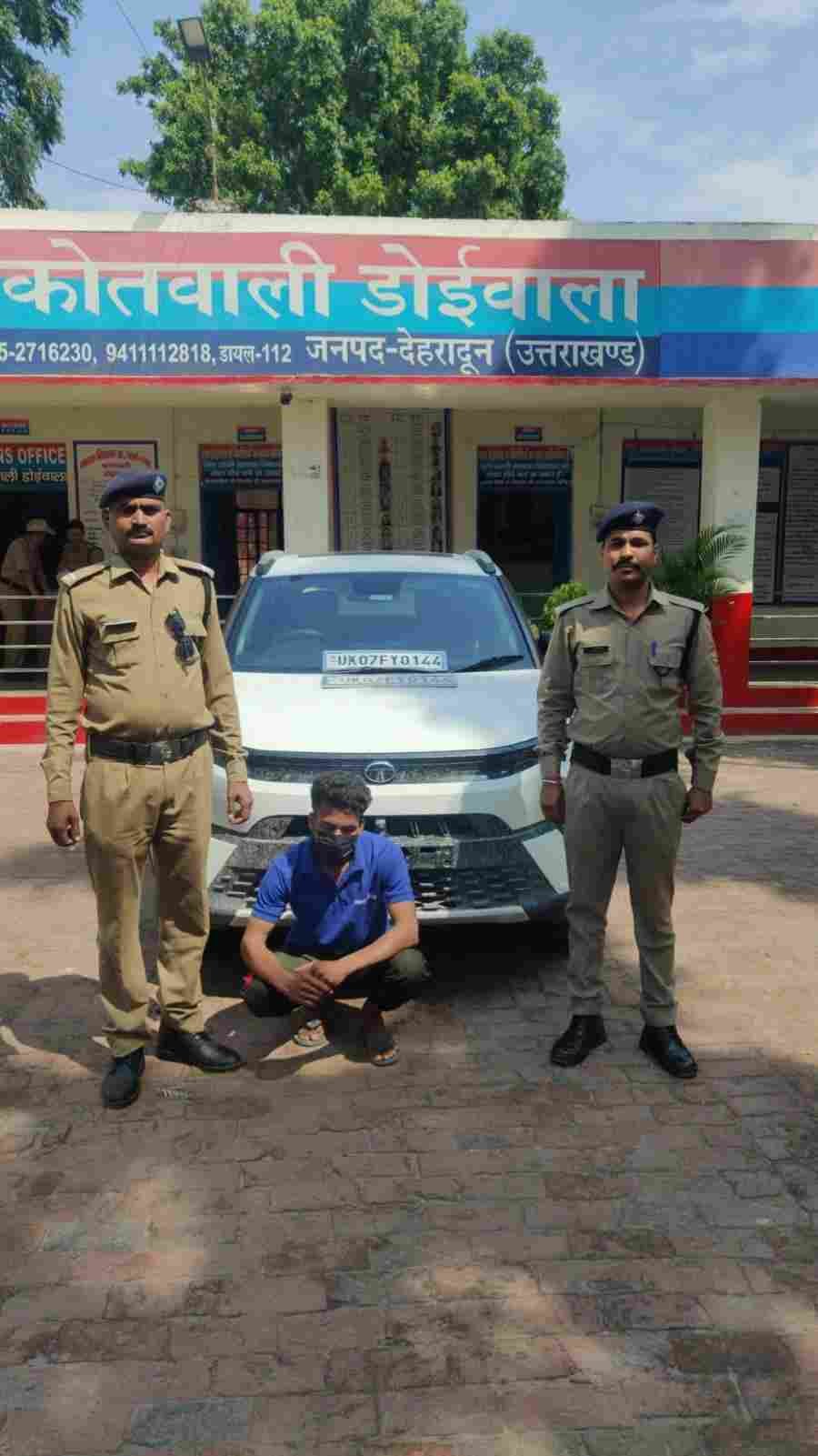 घटना के अनावरण हेतु एसएसपी देहरादून के निर्देशों पर कोतवाली डोईवाला पर पुलिस टीम गठित की गयी, गठित टीम द्वारा CCTV कैमरो का अवलोकन कर उच्चास्तरीय सुरागरसी-पतारसी करते हुए दिनांक 12/04/2025 को चोर पुलिया,भानियावाला थाना डोईवाला से अभियुक्त आकाश पाल पुत्र वीरेंद्र कुमार निवासी फतेहपुर टाण्डा माजरीग्रान्ट, लालतप्पड़, डोईवाला को गिरफ्तार कर उसकी निशानदेही पर घटना में चोरी हुयी कार टाटा नैक्सॉन स0 UA07FY-0144 को बरामद किया गया।