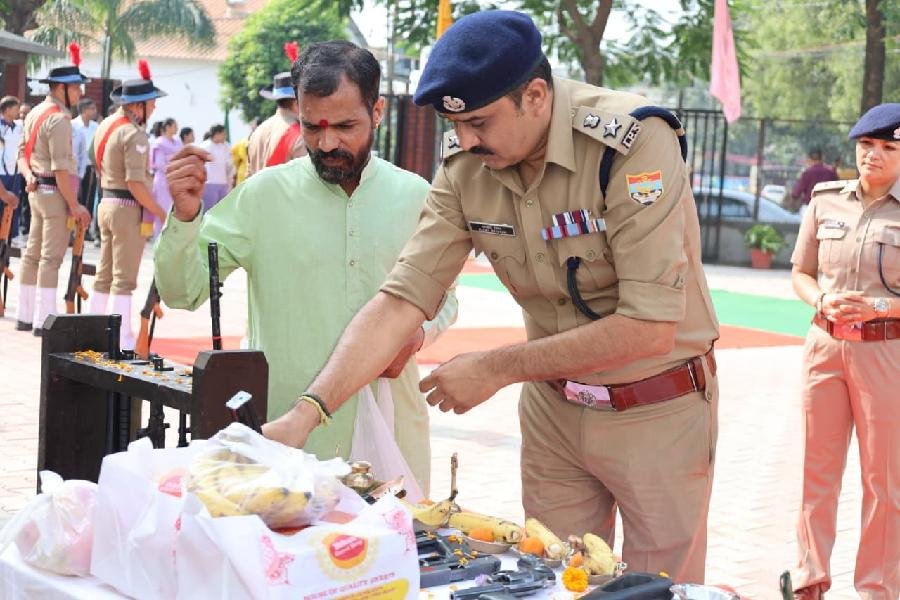 आज दिनांक: 02-10-25 को विजयदशमी के पावन अवसर पर वरिष्ठ पुलिस अधीक्षक देहरादून द्वारा पुलिस लाइन देहरादून स्थित शस्त्रागार में विधिवत शस्त्र पूजन किया गया। पुलिस विभाग में वर्षों से चली आ रही इस परम्परा के दौरान पुलिस अधिकारियों तथा जवानांे द्वारा शस्त्रों की पूजा करते हुए अपने शांति, सेवा तथा सुरक्षा के मूल मंत्र को दोहराते हुए बेहतर एवं सुरक्षित समाज के संकल्प को दोहराया गया। इसके उपरान्त वरिष्ठ पुलिस अधीक्षक देहरादून द्वारा पुलिस लाइन स्थित अश्वशाला में नवनिर्मित सूर्या मन्दिर का पूजा अर्चना करते हुए विधिवत उद्घाटन किया गया।