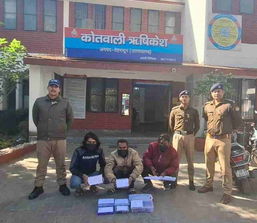 गठित टीमों द्वारा घटना स्थलों तथा उसके आसपास आने जाने वाले मार्गों पर लगभग 250-300 कैमरों को चेक करते हुये फुटेजों का अवलोकन किया गया तथा एस0ओ0जी0 की तकनीकी सहायता से ठोस सुरागरसी पतारसी करते हुये घटना में शामिल अभियुक्तों के सम्बन्ध में जानकारी एकत्रित की गयी तो उक्त घटनाओं में पश्चिमी उ0प्र0 के अन्तर्राजीय नकबजनी गिरोह की संलिप्तता प्रकाश में आयी, जिस पर गिरोह के सदस्यों के सम्बन्ध में गोपनीय रूप से जानकरी प्राप्त करते हुये पुलिस टीम द्वारा दिनांक 04.12.24 को मुखबिर की सूचना पर आईडीपीएल क्षेत्र से गिरोह के तीन सदस्यों 1- सेनी कुमार उर्फ सन्नी पुत्र स्व0 महेन्द्र 2- सन्जू संजय पुत्र स्व0 शोभाराम, 3- विकास पुत्र मनफूल सिंह को 02 अवैध चाकू व 01 अवैध पिस्टल 32 बोर मय 02 जिन्दा कारतूस के साथ गिरफ्तार किया गया अभियुक्तों की तलाशी में उनके पास से अलग अलग घटनाओं से सम्बन्धित चोरी का सामान बरामद किया गया। अवैध अस्लाहों की बरामदगी पर अभियुक्तों के विरूद्ध कोतवाली ऋषिकेश में आर्म्स एक्ट का अभियोग पंजीकृत किया गया ।