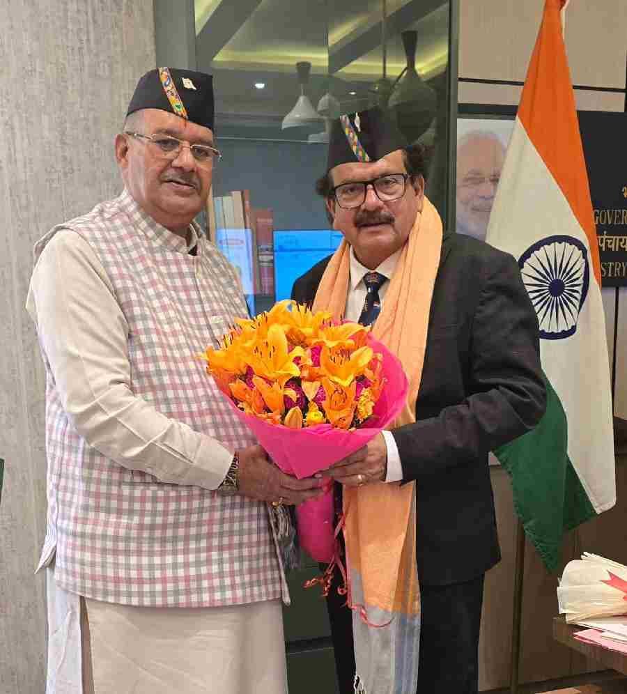 प्रदेश के कृषि और ग्रामीण विकास मंत्री गणेश जोशी ने शनिवार को कृषि भवन नई दिल्ली में केंद्रीय पंचायती राज, पशुपालन, मत्स्य पालन एवं डेरी मंत्रालय, भारत सरकार के केंद्रीय राज्यमंत्री प्रोफेसर एसपी सिंह बघेल से शिष्टाचार भेंट की।