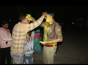 होलिका दहन कार्यक्रम के दौरान पहाड़ी गानों पर पुलिस परिवार की महिलाओं के साथ जनपद में नियुक्त महिला अधिकारियों द्वारा डांस करते हुए पूरे उल्लास के साथ एक दूसरे को रंग लगाकर होली की शुभकामनाएं दी गई।